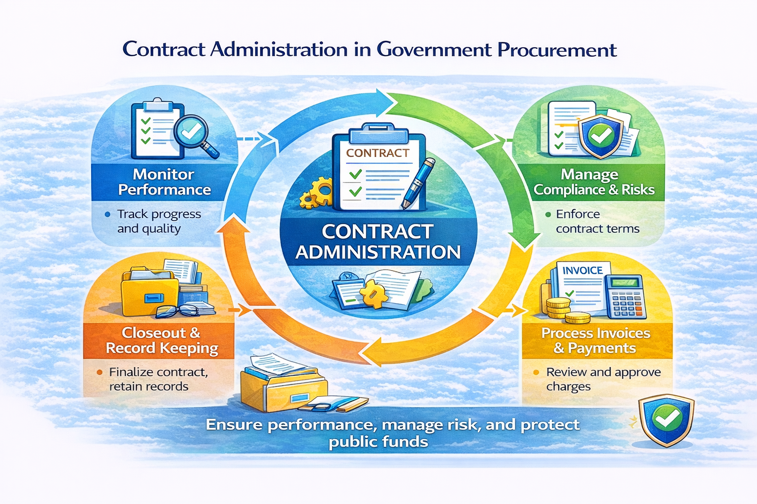 Contract administration is a critical phase of the government procurement lifecycle that begins after contract award and continues through contract closeout. In the public sector, effective contract administration ensures that goods and services are delivered as agreed, public funds are appropriately managed, and contractual obligations are fulfilled in accordance with law, policy, and established terms.